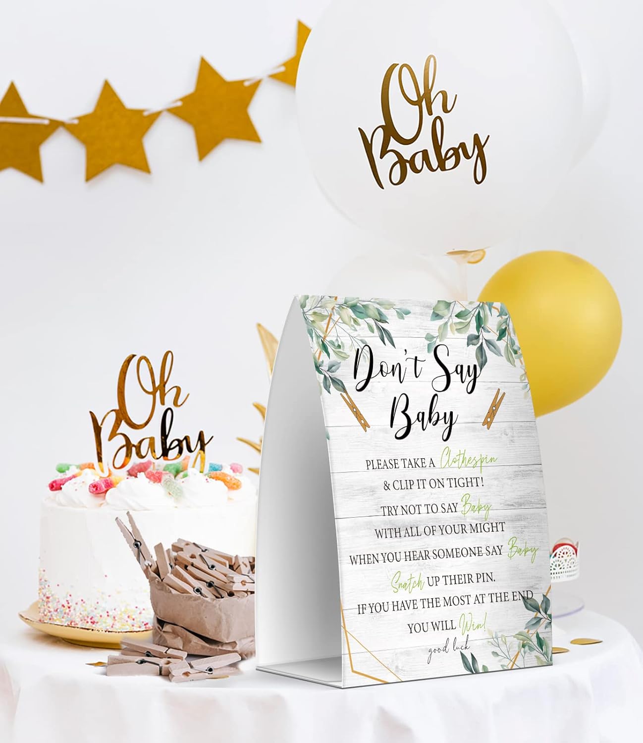 Setting up the Don’t Say Baby Set was a breeze. The sign was easy to hang, and the clothespins were simple to use. We loved how the clothespins could be customized with baby-related items, such as baby blocks or baby toys. This made the decoration feel more personalized and unique. The setup process was quick and effortless, leaving us with plenty of time to focus on other aspects of the baby shower.