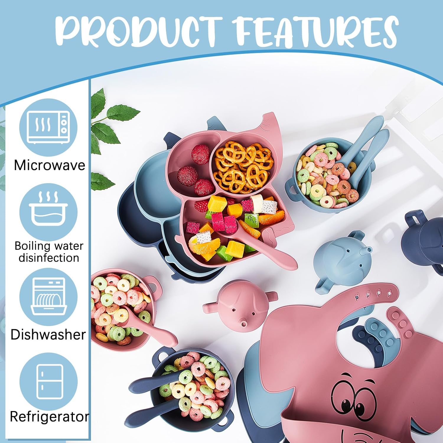 • The feeding set is made of high-quality silicone that is resistant to scratches and cracks.