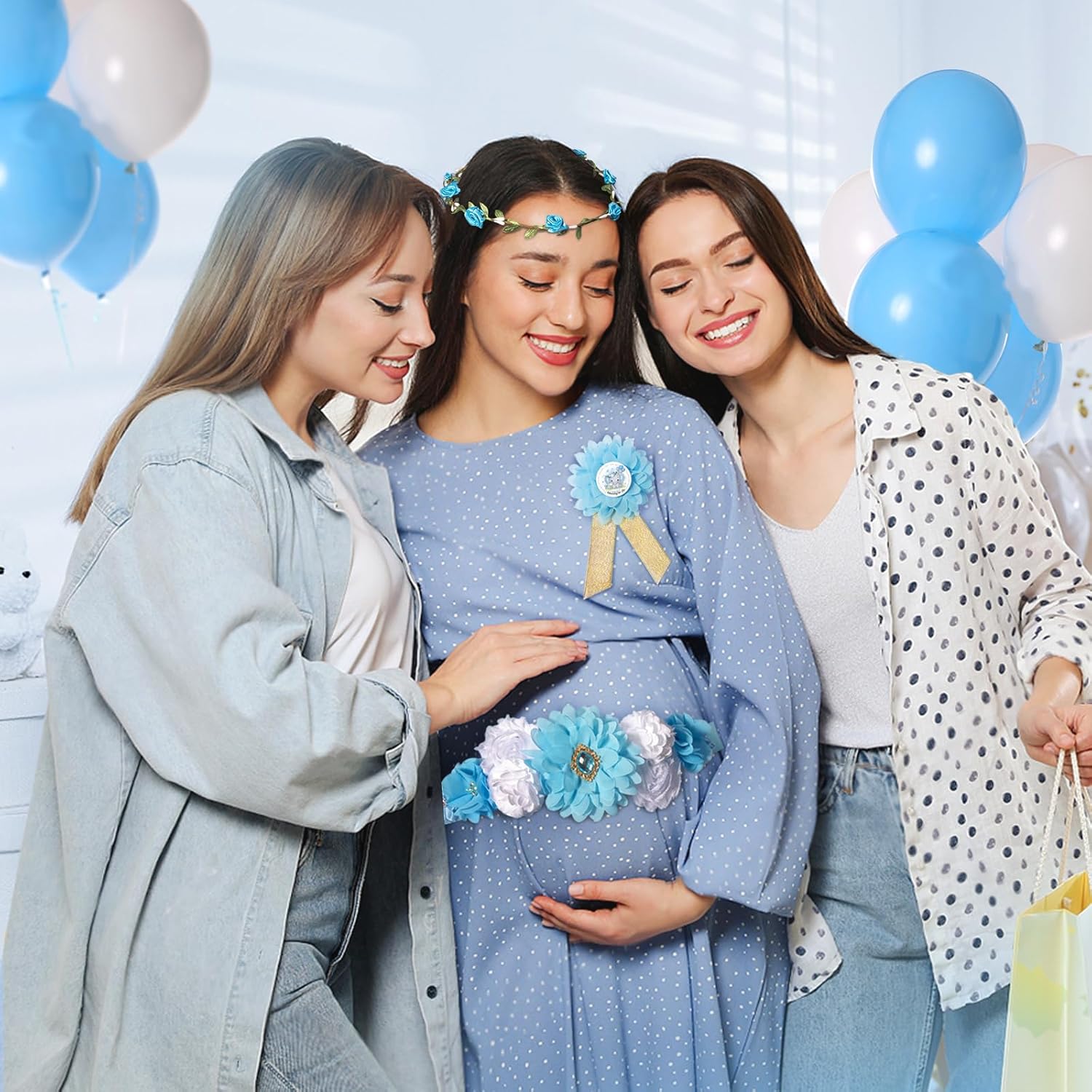 A: Yes, the flower crowns are adjustable and can be worn by the mom-to-be or the baby shower hostess.