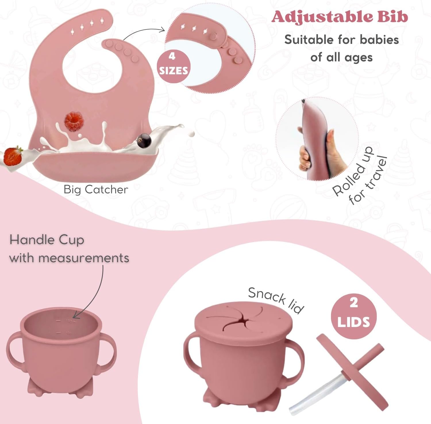 • The set encourages your baby to take the lead in self-feeding, promoting independence and self-confidence.