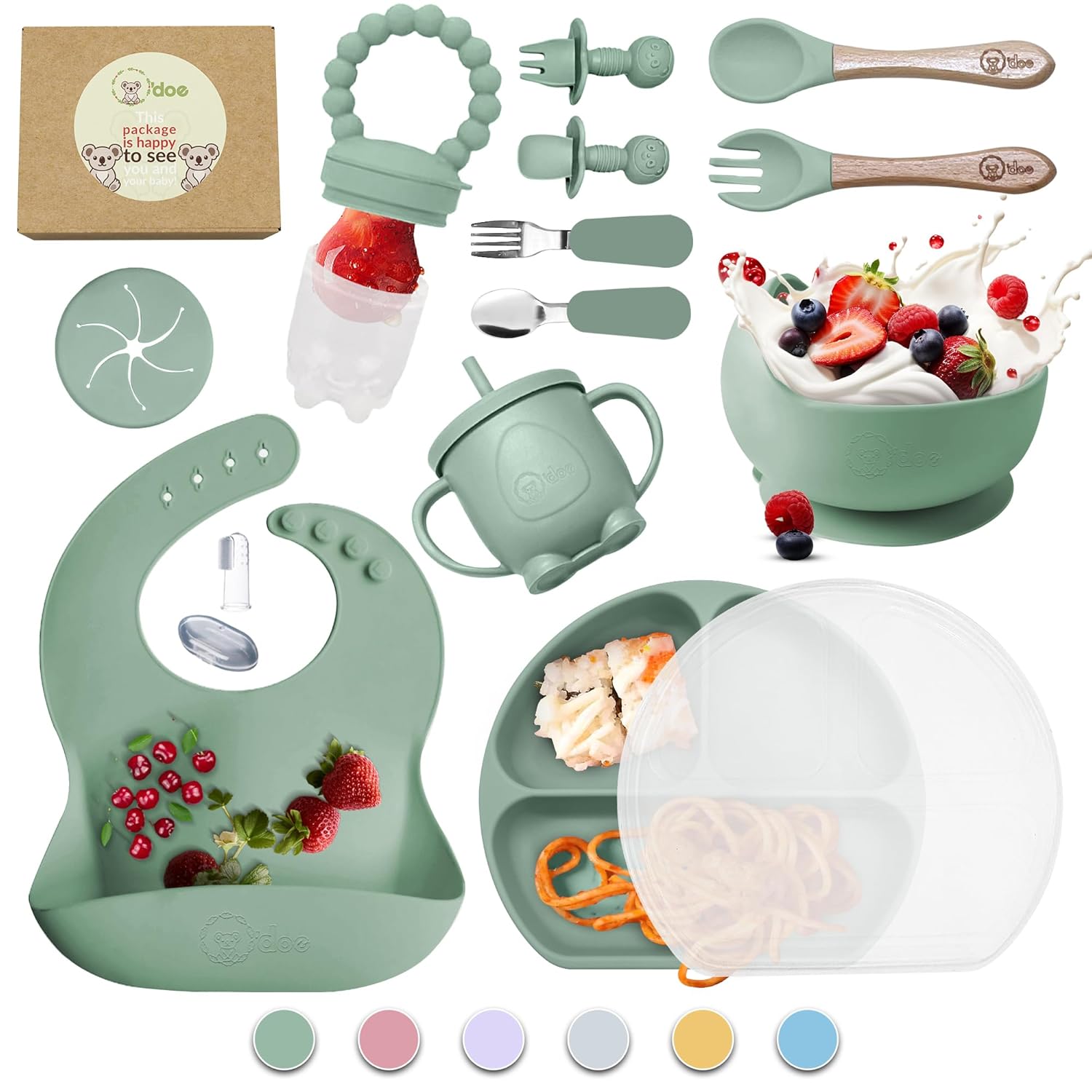 Here are some answers to common questions about the O’doe 17-Piece BPA-Free Silicone Baby Feeding Set: