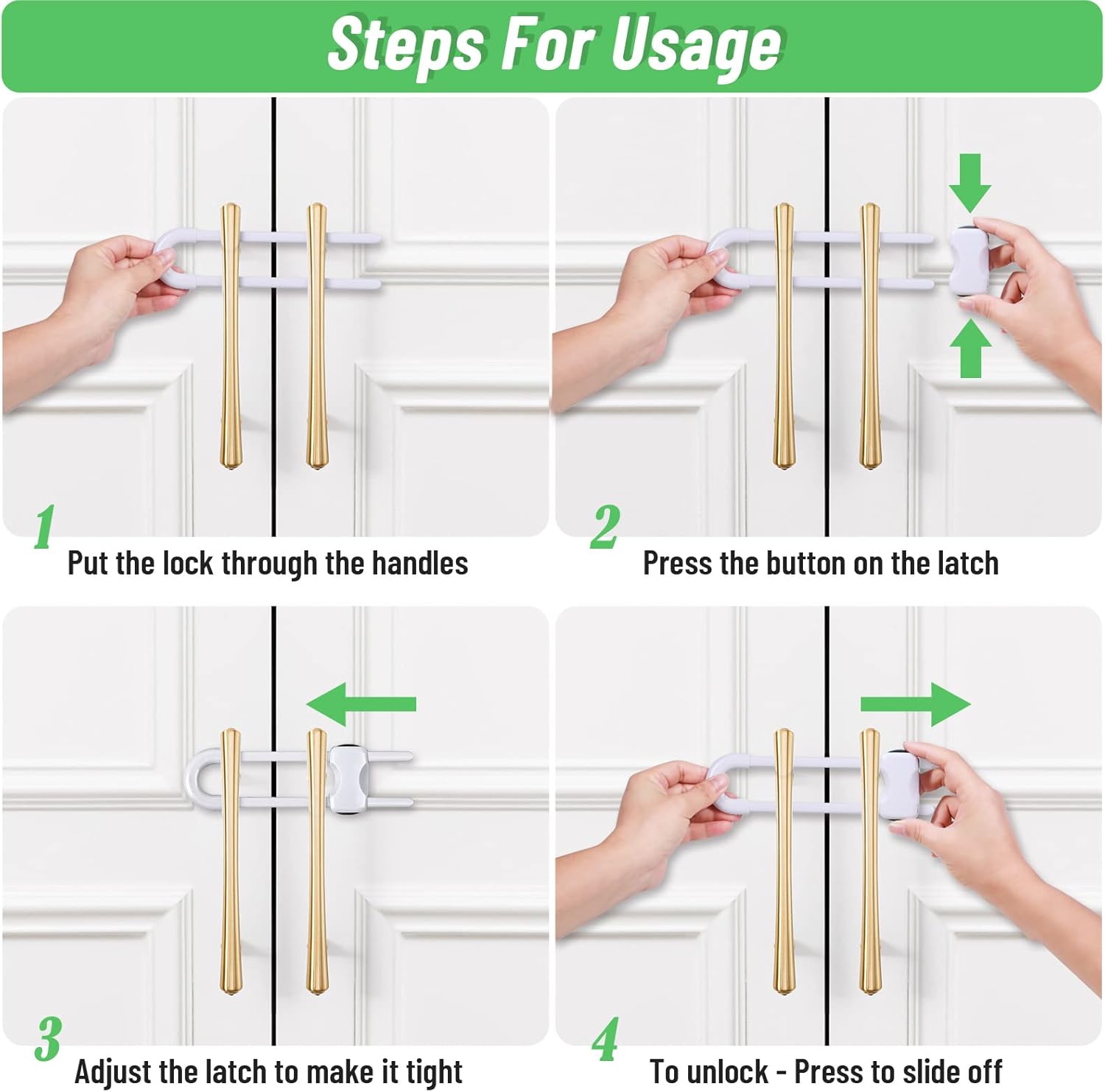 Here is the generated content for the 6-Packs Sliding Cabinet Locks, Modacraft Baby Proofing U-Shaped Child Safety Latches Adjustable White Locks for Handles Knobs Drawers Closet Cupboard: